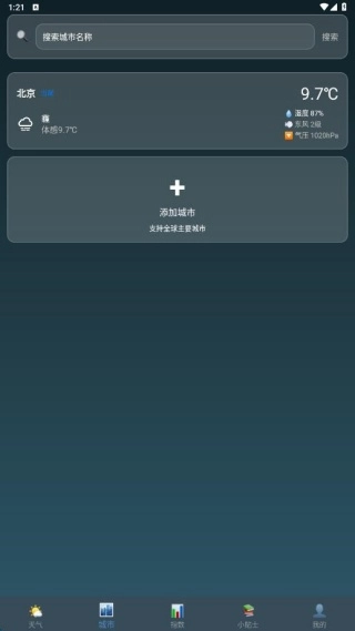2、在城市页面,我们可以快速添加多个城市的位置信息,出差更换城市时能实现秒速切换。