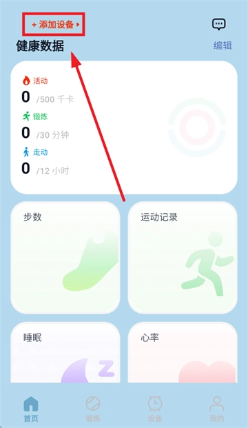 打开华硕悦心运动,进入后点击添加设备
