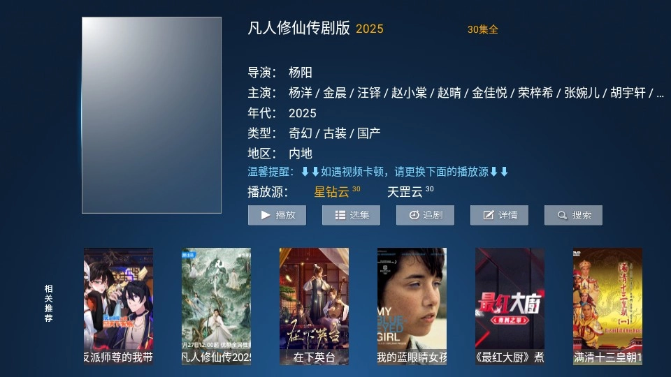 3、随意挑选一部自己喜欢的电视剧来播放,在这里我就以“凡人修仙传剧版”作为例子。