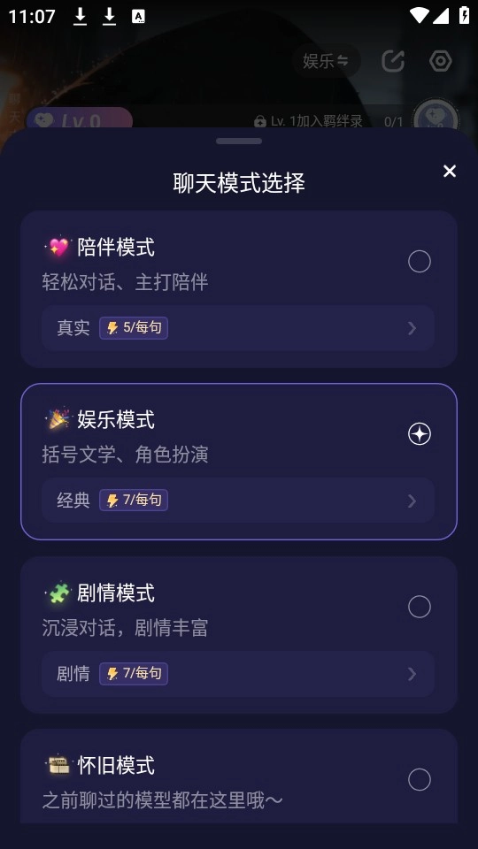4、针对聊天的模式也可以进行选择设置;