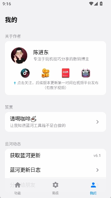 3.在【我的】页面,能够查看作者信息,向下滑动页面还可以调整软件的外观主题。