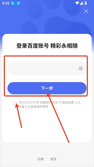 2、直接输入手机号、邮箱或账户名,然后点击下一步。