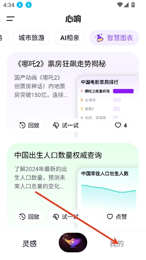 1、打开心响直接进入首页,点击我的。