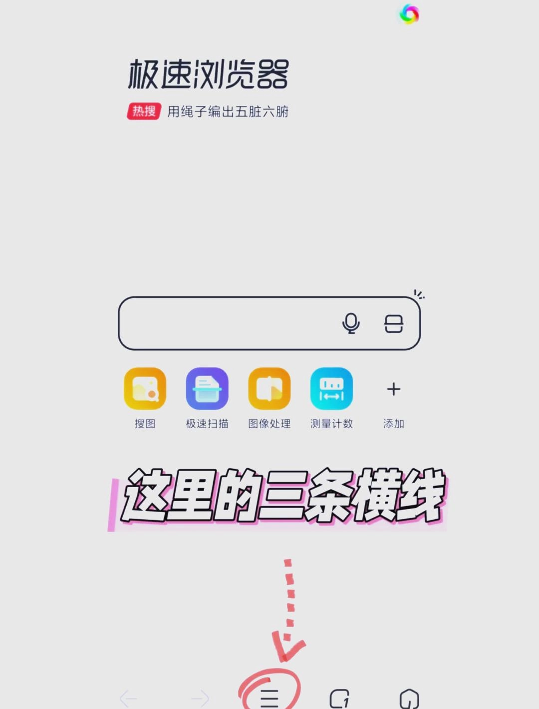 打开360极速浏览器,点击底部“三道杠”菜单栏,
