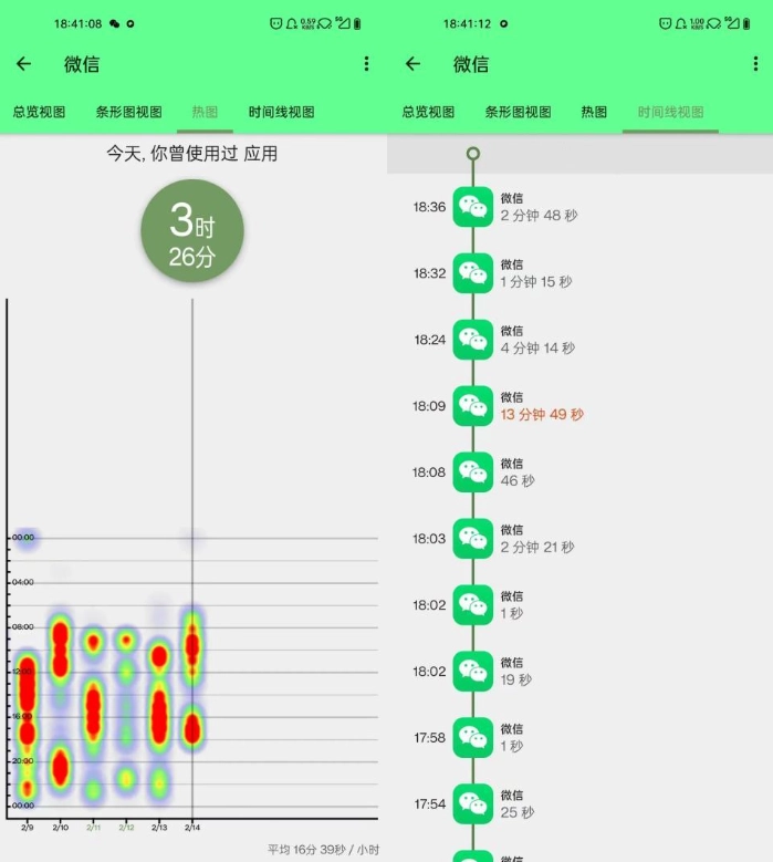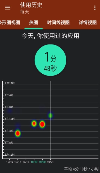 另外,它还能够按照热图或者时间线的形式,展示软件的使用时长以及打开记录。