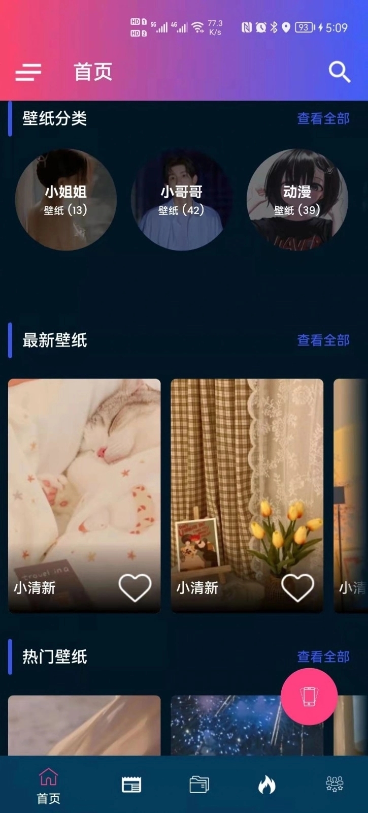 3.依据详细的分类能够迅速点击查找,此外还有不少当下流行热门的壁纸。