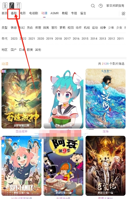 2.在首页选择需要的板块,比如“番剧”。