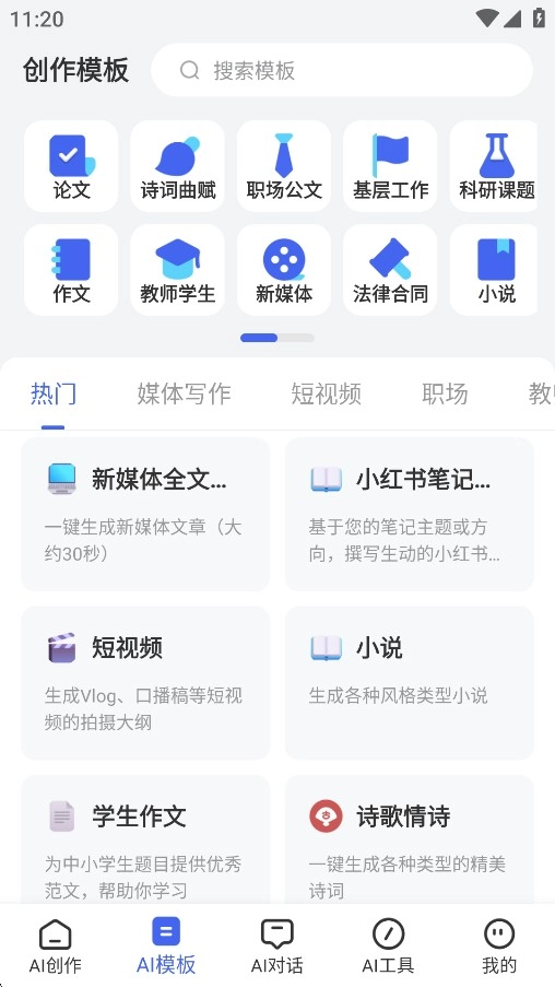 4、点击底部的AI模板,这里拥有各行各业的生成模板。