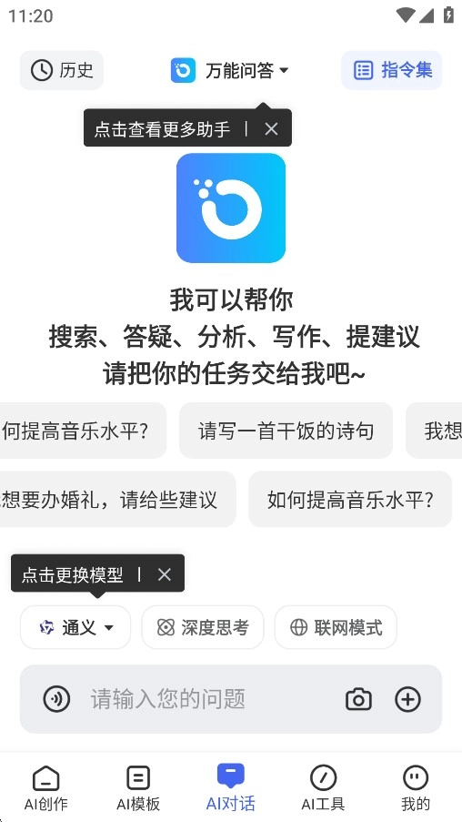 5、进入底部的AI对话,这里可以咨询各种类型的问题了。