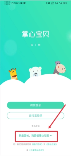 1、打开,在登录界面中点击下方我要创建幼儿园