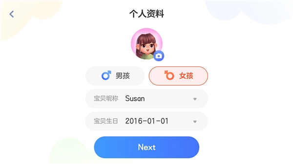 1、可选择宝宝的性别与英文名字,还能随时保存孩子的学习情况。