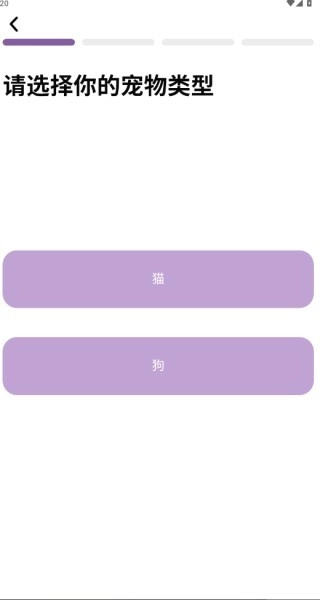 1、在完成软件账号注册后,首次登录进入软件时,需要选择你的宠物类型;