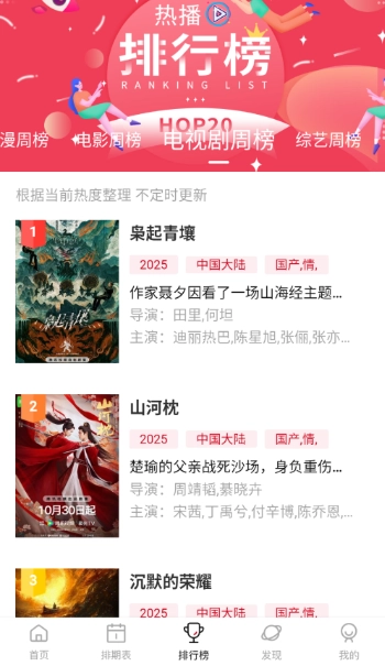 2、还能点击排行榜,查看近期热门的电视剧、电影和综艺