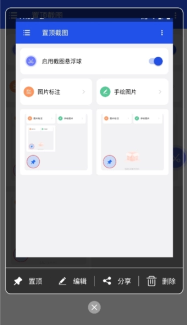 置顶截图是一款实用性很强的手机截图工具,用户可通过它完成截图操作,还能利用其将截图置顶,使图片以悬浮窗形式始终显示在手机屏幕最上方,从而满足使用需求。此外,该工具还支持对图片进行标注与修改,所有功能均围绕手机截图展开,是一款相当出色的系统工具类软件。
