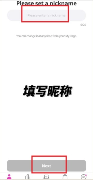 输入昵称,下一步