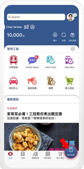 1、打开MTR Mobile并完成登录后,点击【我的车票】选项