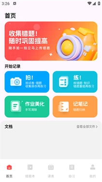 1、在网课搜题酱软件的首页,你能够使用拍照、练题等各类功能。