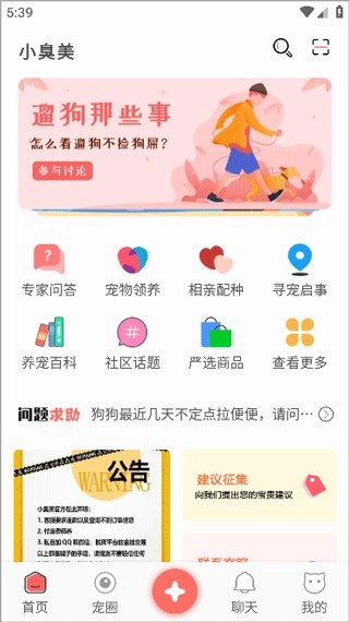 小臭美是一款宠物生活综合服务平台。它打破了单纯的晒宠社区模式,把养宠过程里的信息查询、消费购物以及各类衍生需求都整合到了同一个应用中。小臭美借助社区互动、实用工具和专业服务这三维一体的架构,构建起从养宠知识学习、日常事务管理到实际服务选购的完整闭环。
