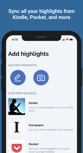 多平台阅读同步:可自动从Kindle、Instapaper、Pocket、iBooks等平台同步阅读标注与精彩内容集锦