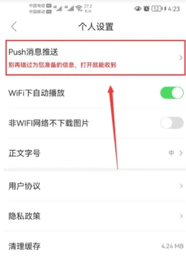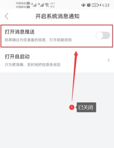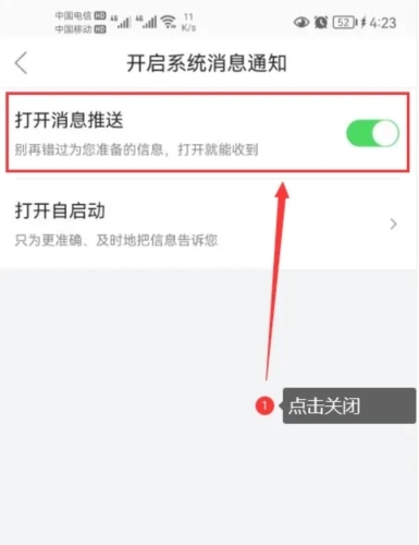 3、点击关闭消息推送功能开关【截图中圈红的部分】