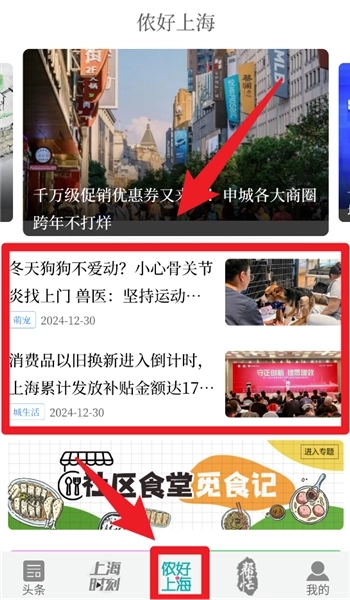 4、点击“侬好上海”,就能获取消费信息与实用生活资讯等内容,紧密贴合市民的日常需求。