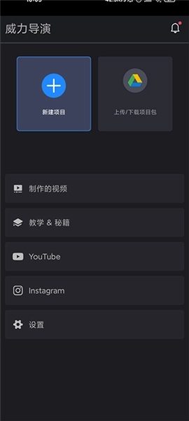 2、在首页,用户能够进行创建视频、查看教程、上传项目包等操作。