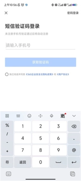 1、首先进入360企业安全云手机端,需要登录;