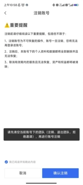5、最后提醒一下,需要退出团队的朋友请先退出团队再进行注销操作哦!