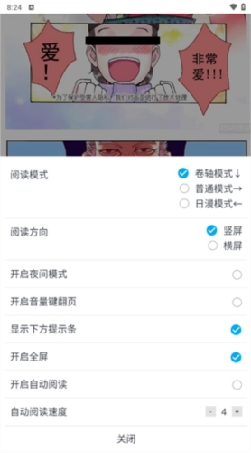 6、也能对一系列阅读方式进行设置操作,可修改阅读模式、阅读方向、夜间模式、全屏显示、阅读速度等内容。