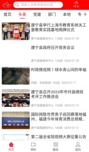 建宁县融媒体中心客户端设有多个板块,其中涵盖头条、时政、党建等聚焦新闻实时资讯的频道。用户可依据自身需求进行选择,偏好哪些频道,就能将其编辑至首页。之后,客户端每天会推送智能化的个性内容,让你无需出门就能知晓周边的各类大小事。此外,建宁融媒还结合当下新媒体趋势,提供“视频”和“精彩直播”功能。在这里,你可以通过观看视频参与话题互动,比如发送弹幕,体验现场氛围;也能浏览评论,了解他人的看法等。