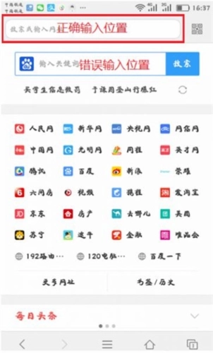 部分手机浏览器启动后,会显示一个搜索框(像百度、360、UC这类浏览器都有),不少用户都习惯在这个搜索框里输入Phicomm路由器的设置URL。