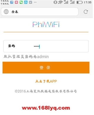 2、进入登录界面后,输入默认密码“admin”,就能进入Phicomm路由器的设置界面。