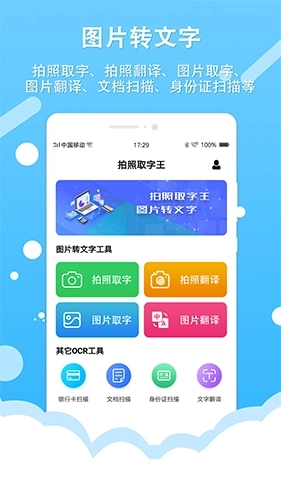 高效率识别:通过先进的OCR(光学字符识别)技术,拍照取字王能够快速准确地提取图片中的文字,节省用户的时间和精力。