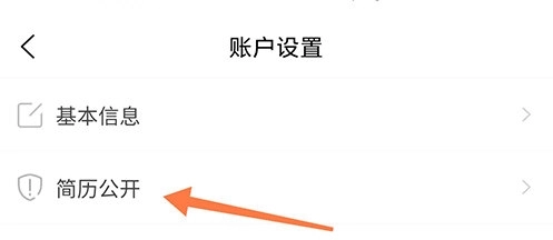 2、进入账户设置页面,点击简历公开。