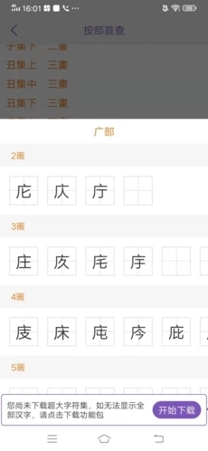 2、点击进入后,依据需查询部首的笔画数,我们就能便捷地找到目标部首。