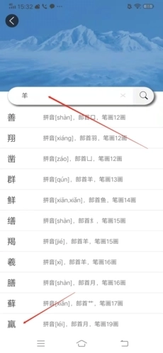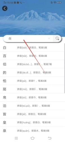 2、在搜索框中输入汉字的部首或偏旁,从下拉列表里找到想要查看的字;