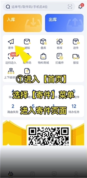 1、进入首页,点击【寄件】;
