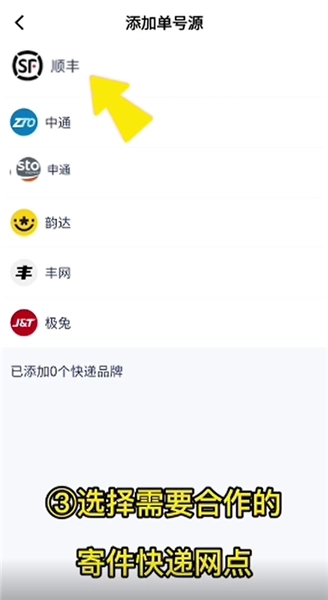 4、然后选择需要合作的寄件快递网点,开启授权;