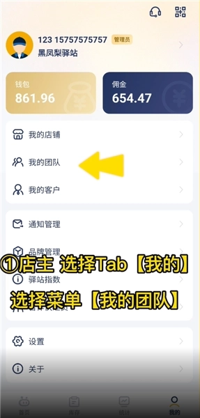 1、店主需点击下方导航栏里的【我的】,接着点击【我的团队】;