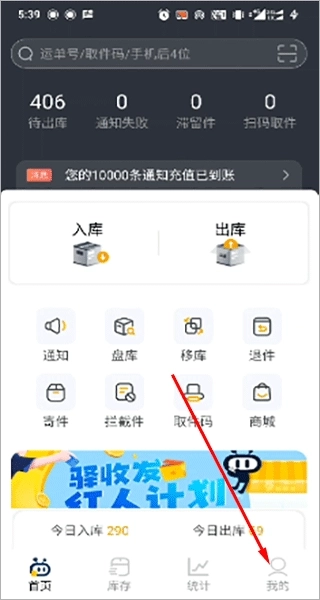 1、在本站下载驿小店最新版并完成安装后打开,在软件下方选择“我的”进入;