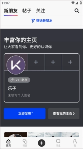 4、发布个人动态,分享自己的兴趣爱好,以此结识更多拥有相同爱好的伙伴。