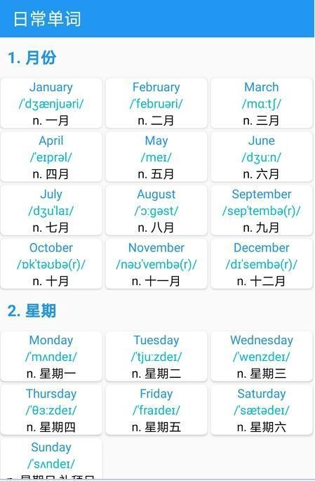 ·包括"月份", "星期", "四季", "数字", "日常用语", 等生活中常见的单词.