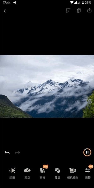 在添加了「覆层」与「相机特效」之后,要是你觉得图片里这片白茫茫的天空不够理想,更向往「空山新雨后」那般澄澈明净的万里晴空,那就可以借助Pixaloop的「换天」功能,只需一键操作,就能让天空瞬间变得晴朗起来。