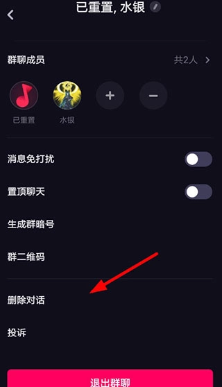 2、进入群聊的设置界面后,点击下方列表中的“删除对话”按钮,即可成功清除该群的所有聊天信息。