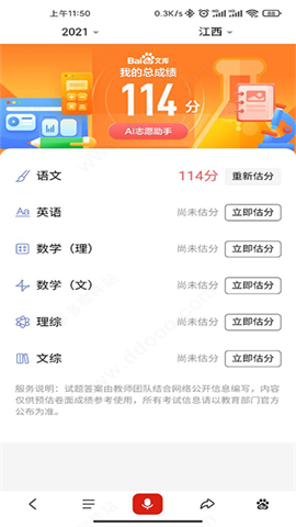 3、完成输入操作后,高考估分系统便会呈现在眼前。