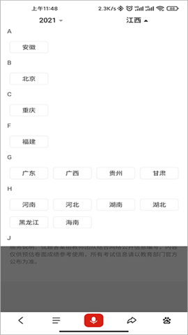 6、地区选定后,即可正式开启高考估分流程。