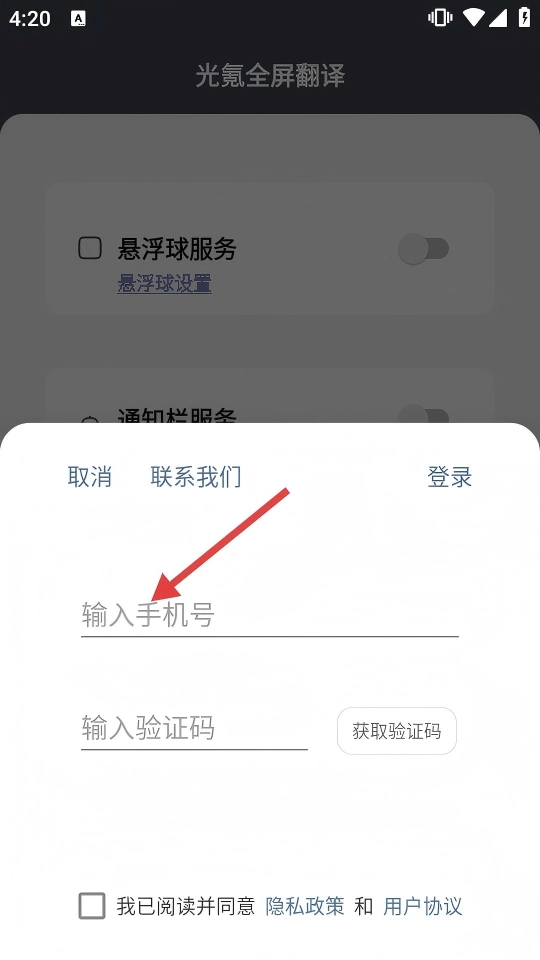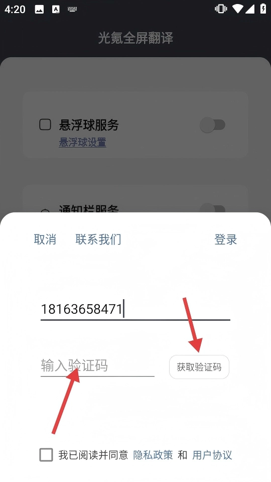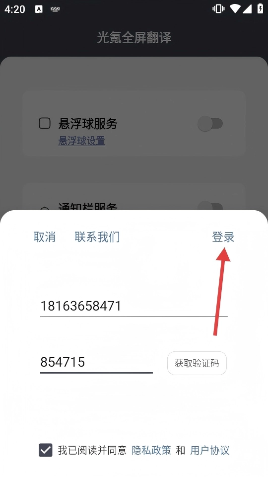在填好验证码并勾选相关协议后,点击【登录】按钮,就能完成账号登录操作,进而使用该软件的翻译功能。