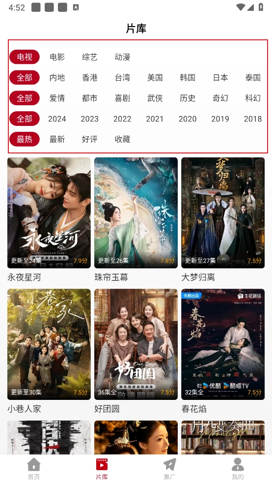 在片库里面还可以根据需求进行筛选。