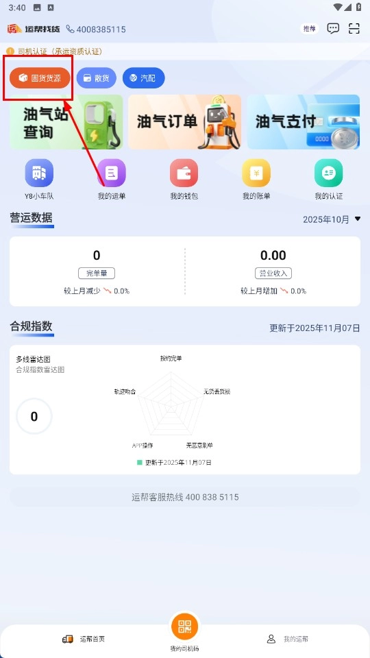 在运帮首页,找到并点击【囤货货源】功能按钮,即可进入货源页面。