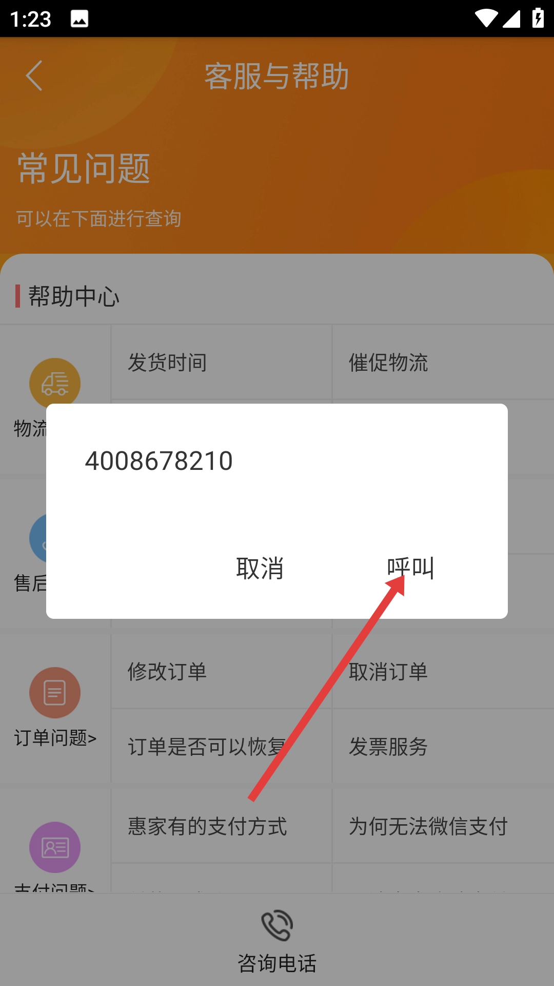 你可以在客服与帮助页面找到【咨询电话】选项,点击之后就会弹出咨询电话号码。